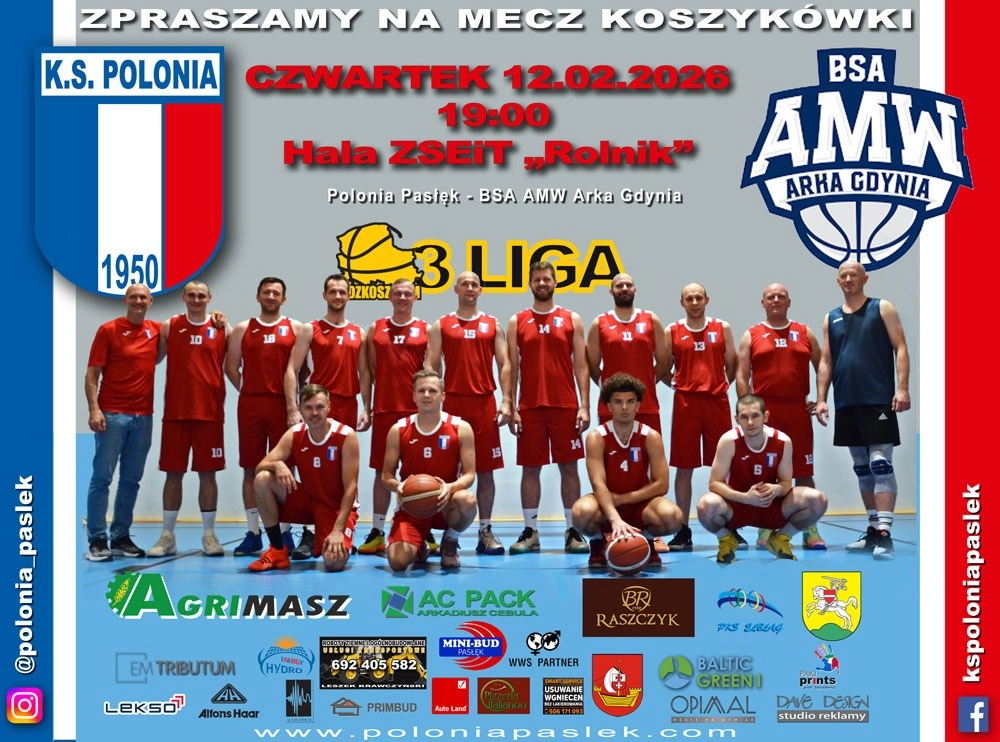 W czwartek 12 lutego o godzinie 19:00 rozegrany zostanie w Pasłęku zaległy mecz z drużyną BSA AMW Arka Gdynia. Mecz odbędzie się w hali Zespołu Szkól Ekonomicznych i Technicznych przy ulicy Wojska Polskiego....