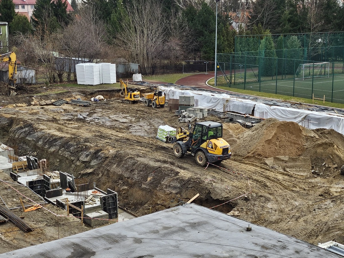 Budowę hali sportowej przy SP 3 odwiedziliśmy 3 i 13 marca. W pierwszym terminie na budowie zastaliśmy tylko dwie osoby. Dużo większy ruch panował natomiast w miniony piątek. Firma KB z Kamienia Dużego koło...