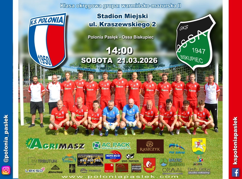 W sobotę o godzinie 14:00 na stadionie w Pasłęku rozpocznie się mecz ligi okręgowej inaugurujący rundę wiosenną. Przeciwnikiem drużyny Polonii będzie zespół Ossa z Biskupca Pomorskiego. W sierpniu minionego...