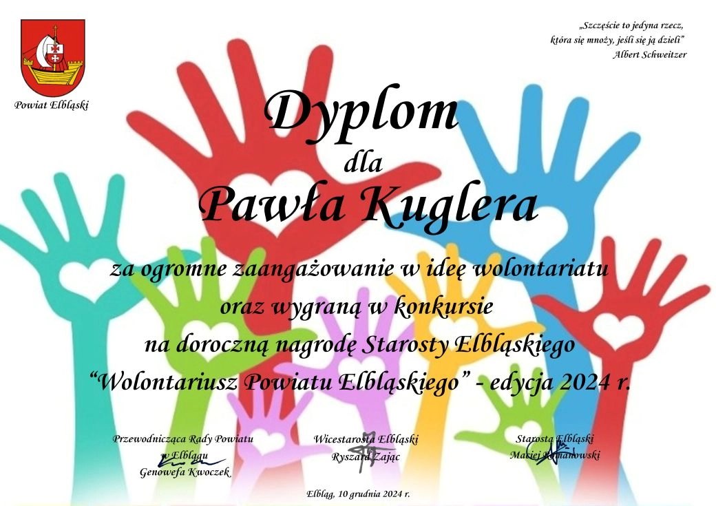 Zarząd Powiatu w Elblągu po raz kolejny podjął decyzję o przyznaniu nagrody Starosty Elbląskiego w dziedzinie Wolontariatu. Ideą nagrody jest wyróżnienie i docenienie osób, które poprzez wolontariat prowadzą...