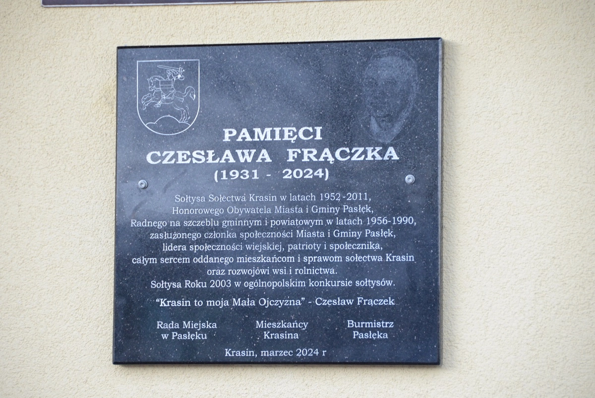 Wczoraj w Krasinie na budynku świetlicy wiejskiej odsłonięto pamiątkową tablicę poświęconą śp. Czesławowi Frączek. W odsłonięciu tablicy uczestniczyli mieszkańcy wsi Krasin, rodzina Pana Czesława oraz władze...
