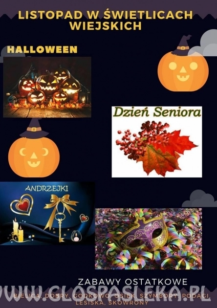 W listopadzie opiekunowie przygotowują spotkania dla najmłodszych i dorosłych. Bedą więc zabawy Halloweenowe, Andrzejkowe, Ostatkowe oraz celebrowanie Dnia Seniora. Zapraszamy również mieszkańców okolicznych...