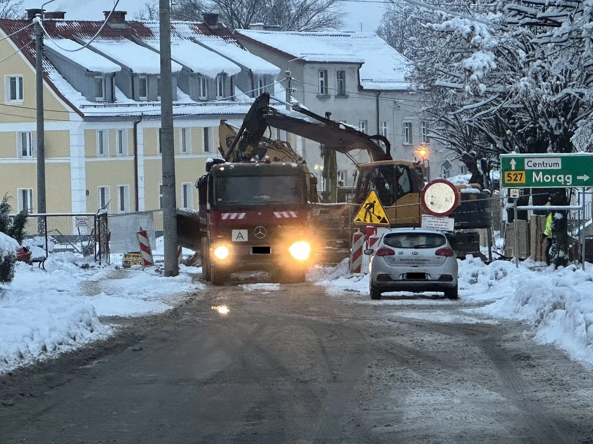 Trudne warunki pogodowe nie przeszkadzają firmie DB-GEO Daniel Bojarowski z Działdowa w remoncie skrzyżowania ulic Jana Pawła II i Kopernika. Przebudowa kosztuje 451 601,33,00 zł, w tym środki UE to...