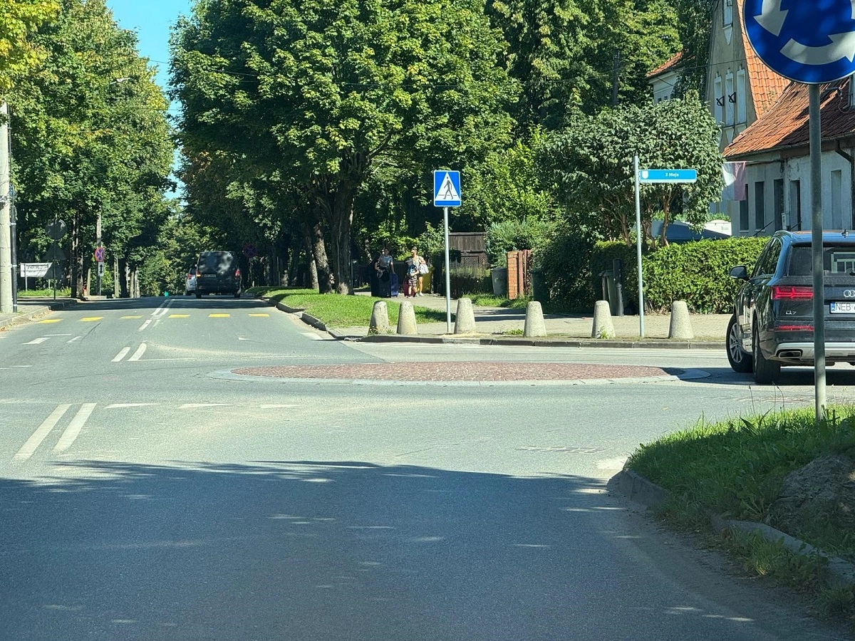 Rondo u zbiegu ulic 3 Maj i Boh. Westerplatte będzie przebudowane. Według dokumentacji tzw. pinezka przesunięta zostanie o około 1,5 metra w kierunku dworca. Czyli patrząc na zdjęcie środek ronda będzie...