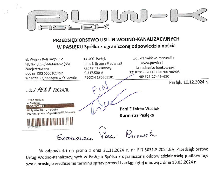 Jedna oferta wpłynęła na przetarg dotyczący udzielenia kredytu dla gminy Pasłęk. Przypominamy, że: przedmiotem zamówienia jest usługa polegająca na udzieleniu bankowego długoterminowego kredytu gotówkowego w...