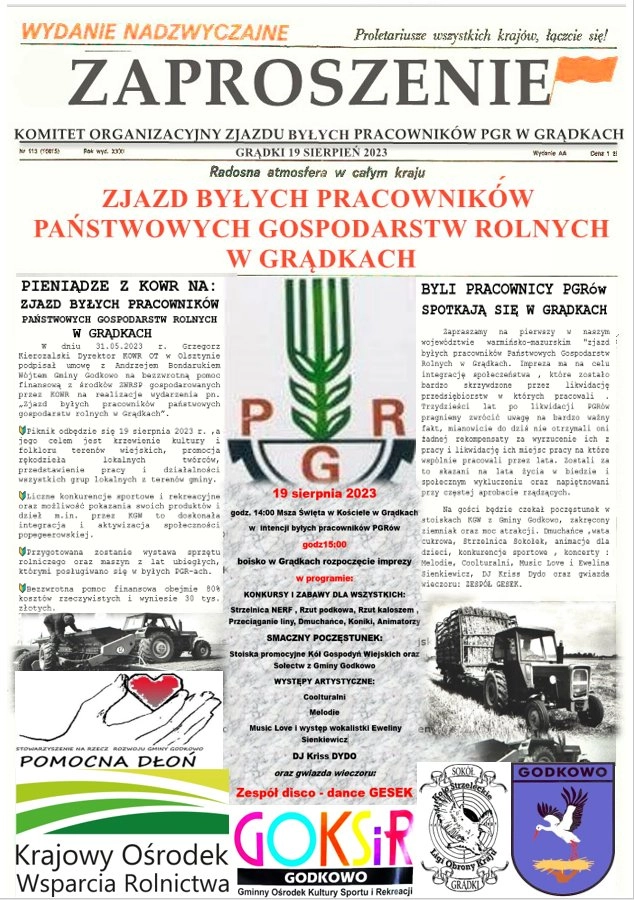 19 sierpnia W miejscowości Grądki w Gminie Godkowo odbędzie się "Zjazd byłych pracowników Państwowych Gospodarstw Rolnych w Grądkach". Wydarzenie dofinansowane przez KOWR w Olsztynie. Impreza ma na celu...