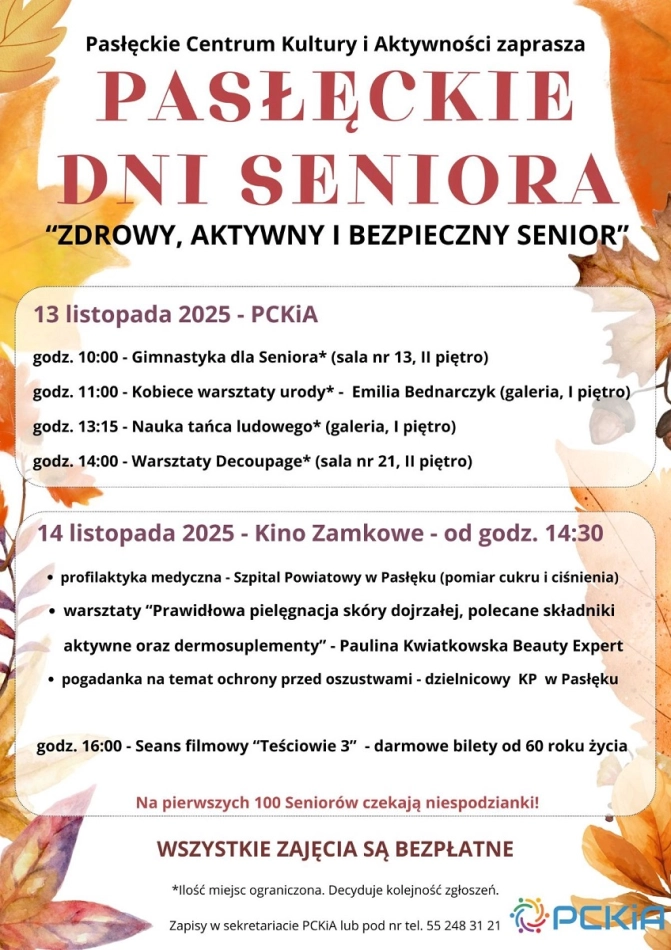 Serdecznie zapraszamy wszystkie osoby od 60. roku życia na Pasłęckie Dni Seniora, które odbędą się 13 i 14 listopada 2025 r. To wyjątkowe wydarzenie organizowane jest z myślą o seniorach i będzie doskonałą...