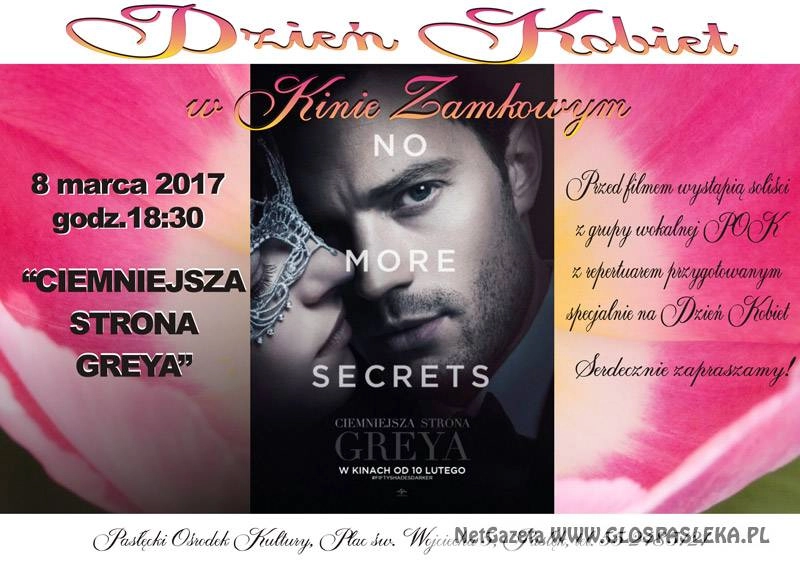 Z okazji Dnia Kobiet Pasłęcki Ośrodek Kultury zaprasza 8 marca 2017 r . o godz. 18:30 do sali widowiskowo – kinowej na film pt."Ciemniejsza strona Greya". Przed filmem wystąpią soliści z sekcji wokalnej POK...