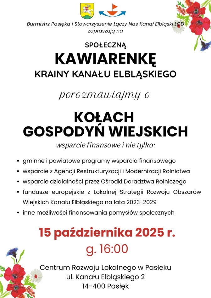 Stowarzyszenie Łączy Nas Kanał Elbląski Lokalna Grupa Działania serdecznie zaprasza na kolejną Kawiarenkę Krainy Kanału Elbląskiego do Centrum Rozwoju Lokalnego w Pasłęku, ul. Kanału Elbląskiego 2. Już 23...