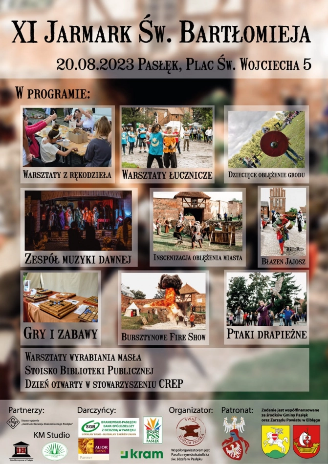 Zapraszamy do spędzenia z nami tej niedzieli na 11. Jarmarku św. Bartłomieja w Pasłęku Jak co roku kramom i straganom będą towarzyszyć różne rozrywki, gry i zabawy na wolnym powietrzu, warsztaty łucznicze i...