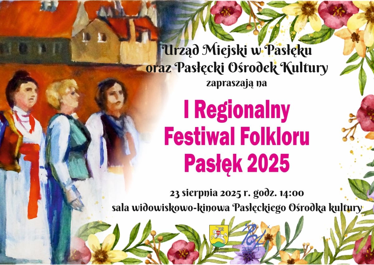 Urząd Miejski w Pasłęku oraz Pasłęcki Ośrodek Kultury zapraszają do udziału w I Regionalnym Festiwalu Folkloru Pasłęk 2025, który odbędzie się 23 sierpnia 2025 r. w sali widowiskowo-kinowej Pasłęckiego...