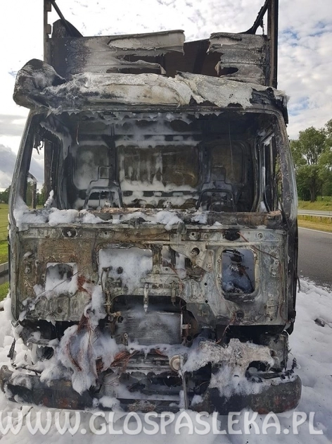 Informację o pożarze strażacy otrzymali około godz. 16.20. Na akcję wysłano dwa zespoły, w sumie 7 strażaków. Kiedy dotarli na miejsce, ogień obejmował już całą kabinę. Kierowca znajdował się poza pojazdem....