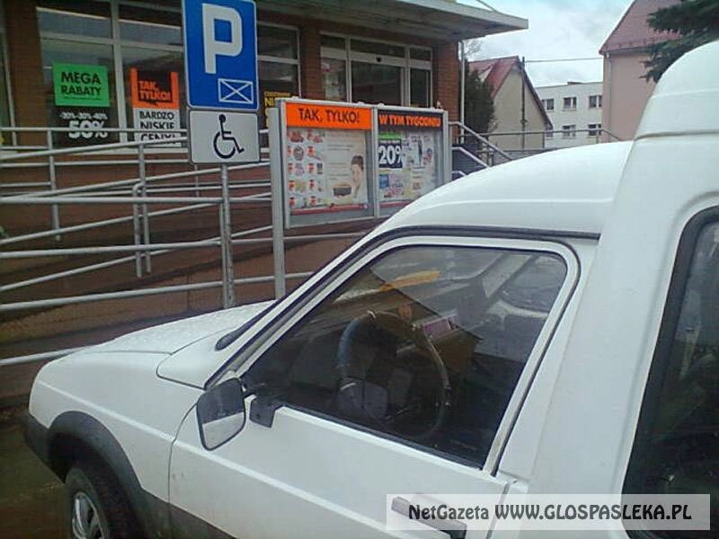 W nawiązaniu do Pana tekstu że "To na pewno parkowała kobieta" przesyłam zdjęcia z wczoraj. Przed Biedronką jest auto stojące na miejscu dla inwalidów. Kierowca uważał że jak ma kartkę zaopatrzenie, to może...