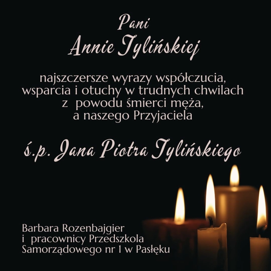 Łącząc się w bólu Pani Annie Tylińskiej oraz całej rodzinie i bliskim najszczersze wyrazy współczucia, wsparcia i otuchy w trudnych chwilach , z powodu śmierci Męża Składają: Koleżanki i Koledzy z chóru...