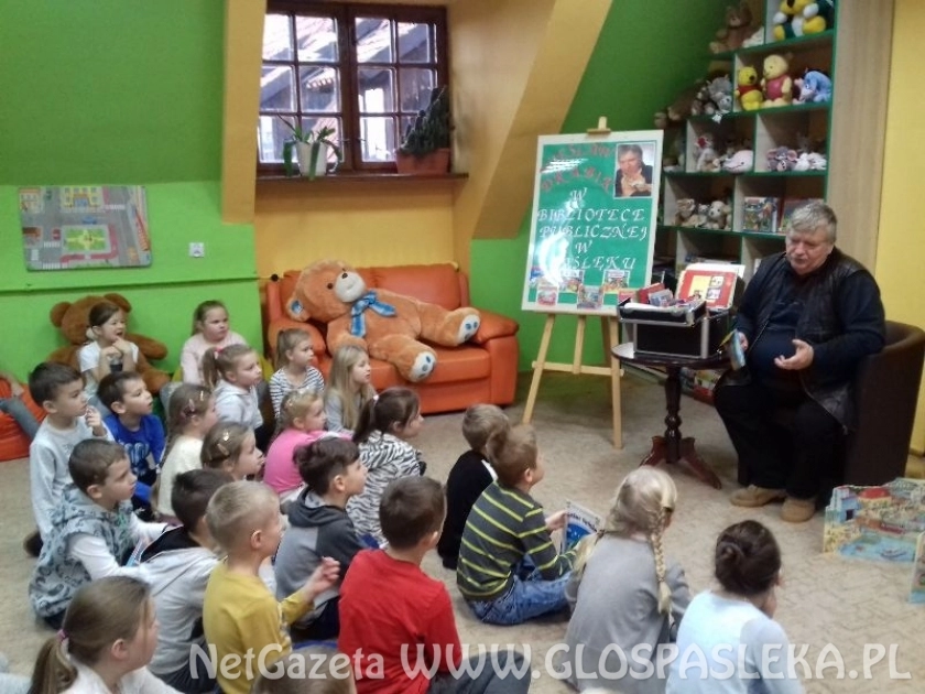 W trakcie spotkania autor opowiadał jak powstają książki, demonstrował ilustracje i czytał fragmenty swoich książek. Zadawał zagadki, w których nagrodami były jego książeczki, zakładki oraz naklejki z...