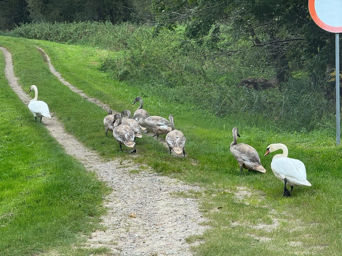 W Parku nad Jeziorkiem bytuje łabędzia rodzina. Jest to wielodzietna rodzina. Młodych ptaków jest siedem. Wędrują pod opieką rodziców, którzy łączą się ze sobą na całe życie. Młode zaczynają latać między 120...