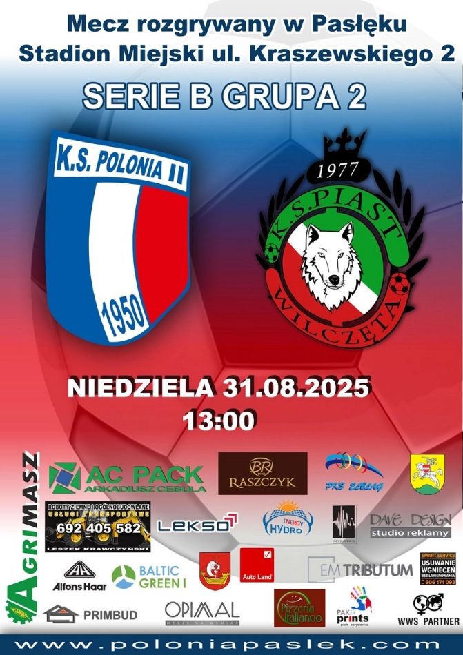 Potok Weklice i Polonia II zmierzą się w niedzielę na stadionie w Pasłęku przy ul. Kraszewskiego w meczu o mistrzostwo B klasy. Spotkanie rozpoczyna się o godzinie 12:00. Organizatorzy meczu zapraszają do...