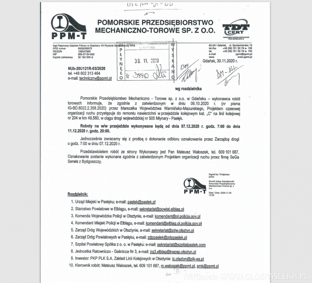 Problem z Pocztą Polską w Pasłęku